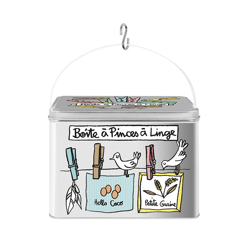 Boîte à pinces à linge avec charnière de marque Derrière la Porte.