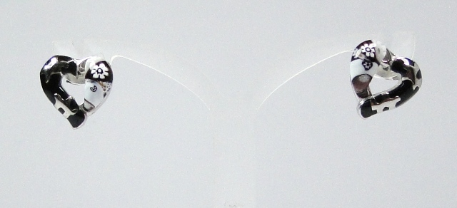 Boucles d’oreilles clous coeur noir et blanc millefiori.