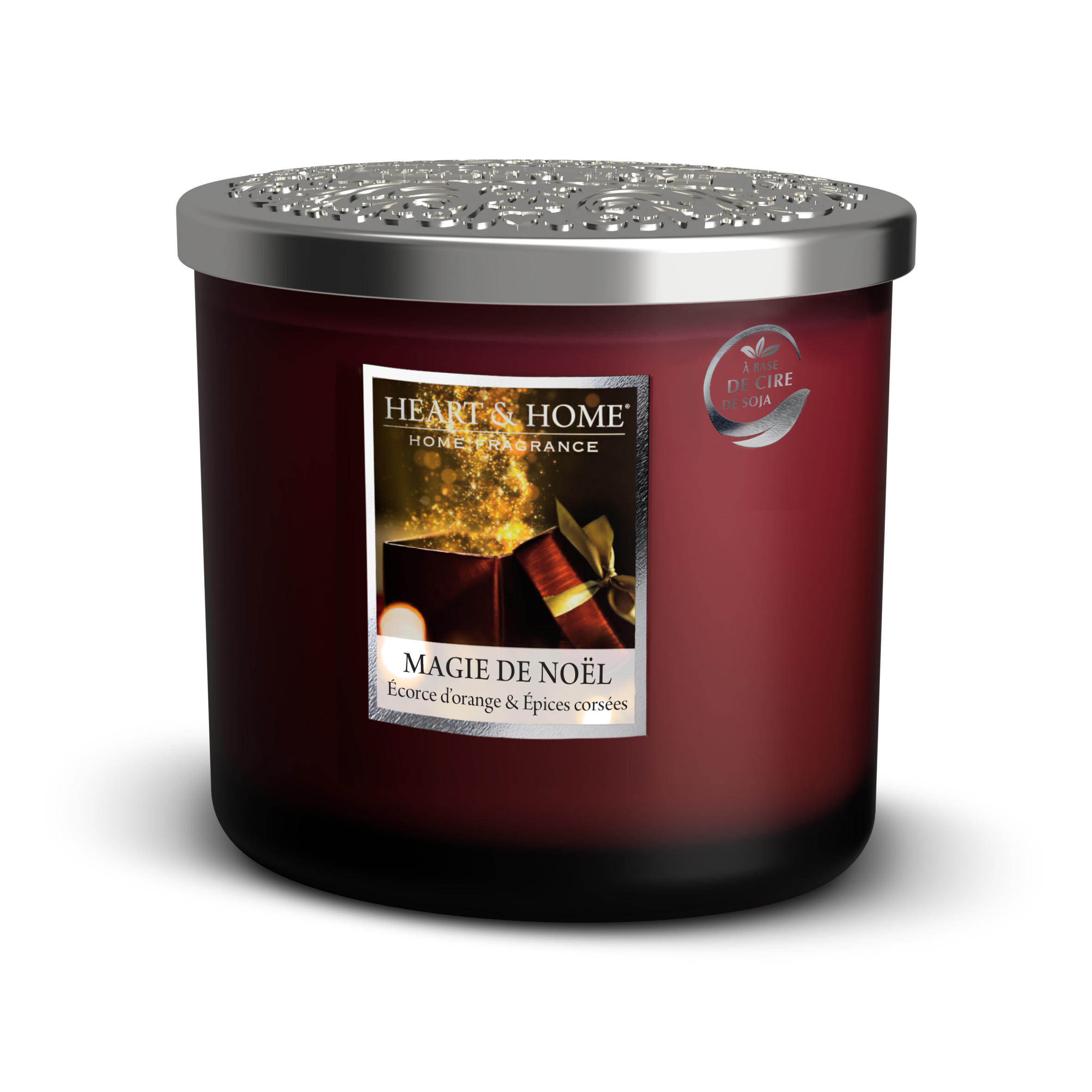 Bougie parfumée à base de cire de soja ellipse 2 mèches senteur Magie de Noël (Ecorce d’orange & Épices corsées) de marque Heart & Home.
