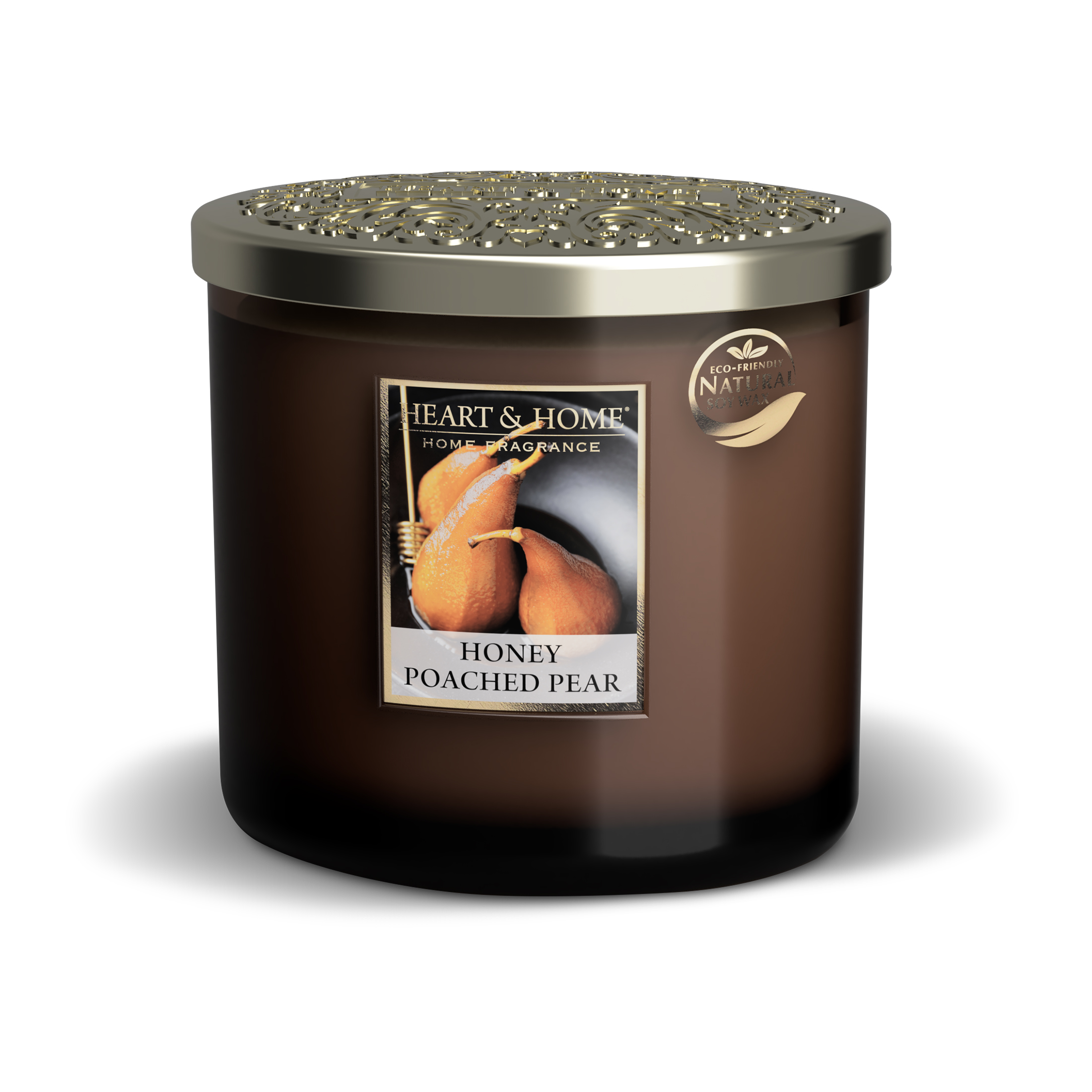 Bougie parfumée à base de cire de soja ellipse 2 mèches modèle Poire pochée au miel de marque Heart & Home.