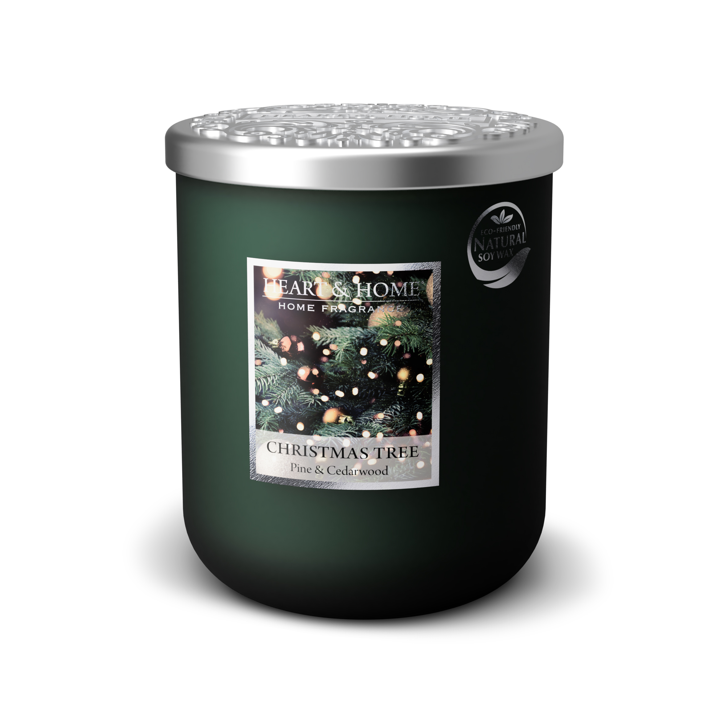 Bougie parfumée à base de cire de soja grand modèle senteur Sapin de Noël (pin et cèdre) de marque Heart & Home.