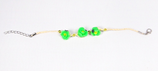 Bracelet pâte polymère (FIMO) 3 fleurs vert fluo avec fermoir d’une longueur de 17cm.