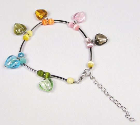 Bracelet verre MURANO avec fermoir coeurs multicolores d’une longueur de 20cm.