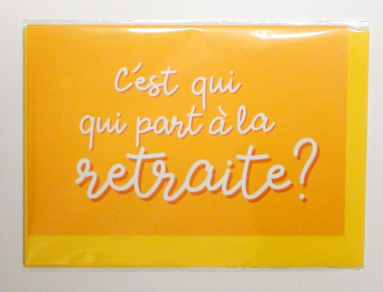 Carte double (+ enveloppe) modèle C’est qui qui part à la retraite ? – Derrière la porte (DLP)